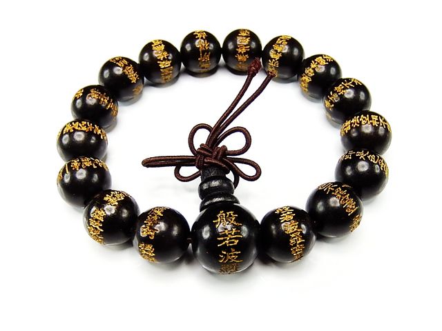 般若心経数珠ブレスレット木製黒檀木精工金彫り12mm念珠